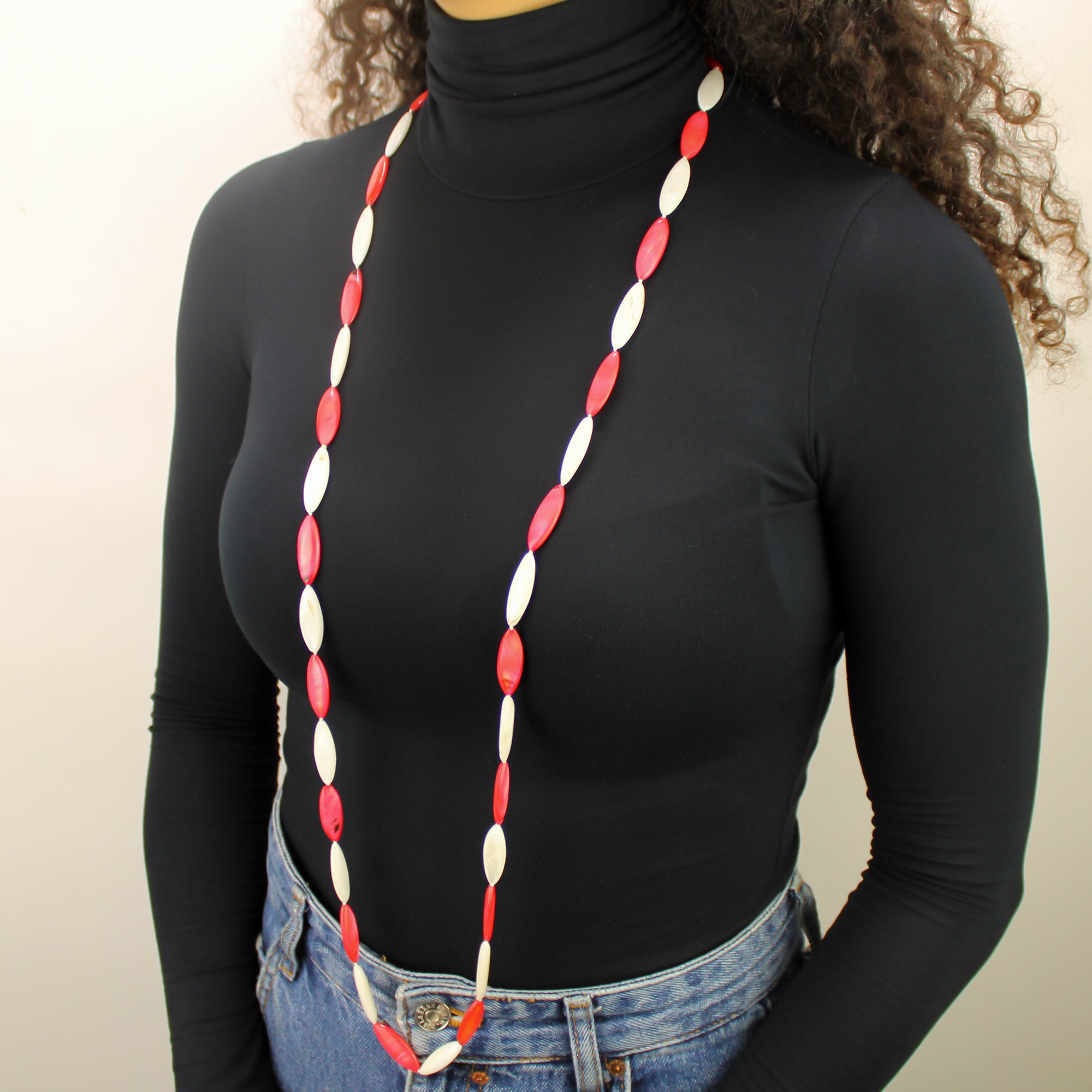 Collana lunga madreperla vari colori, bianco naturale e rosso