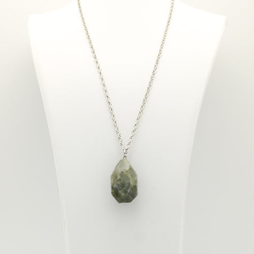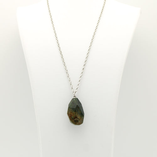 Ciondolo labradorite forma bombata, sfaccettata, irregolare
